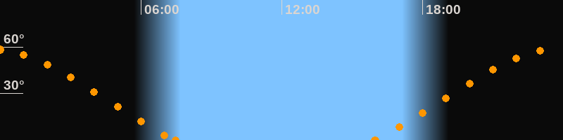 Höchster Stand (Kulmination)23:40 Uhr (h = 58.5°)