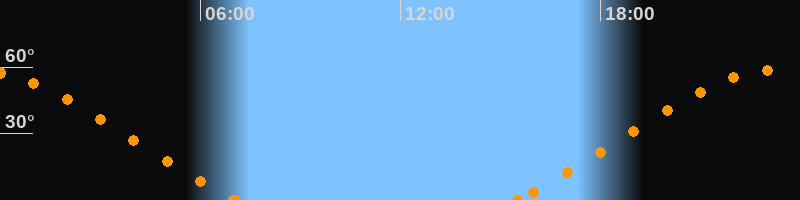 Höchster Stand (Kulmination)23:15 Uhr (h = 58.6°)