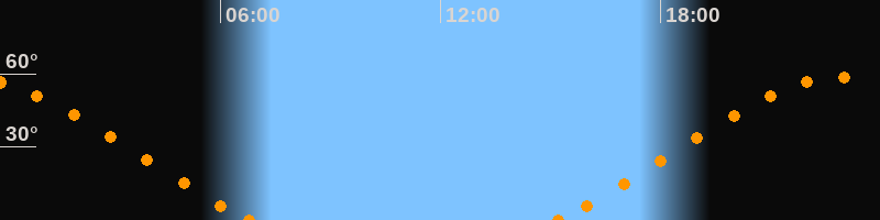 Höchster Stand (Kulmination)22:58 Uhr (h = 58.7°)