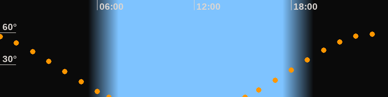 Höchster Stand (Kulmination)22:54 Uhr (h = 58.7°)