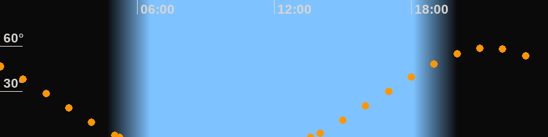Höchster Stand (Kulmination)21:23 Uhr (h = 59°)