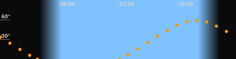 Höchster Stand (Kulmination)19:55 Uhr (h = 59.1°)