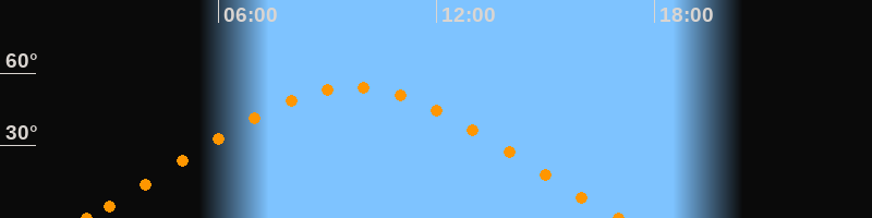 Höchster Stand (Kulmination)09:42 Uhr (h = 54.3°)