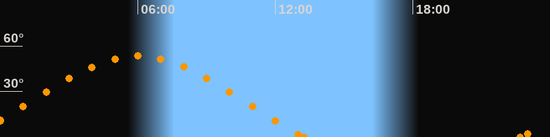 Höchster Stand (Kulmination)06:00 Uhr (h = 53.5°)