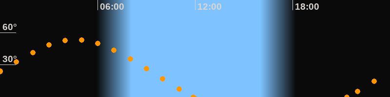 Höchster Stand (Kulmination)04:38 Uhr (h = 53.5°)