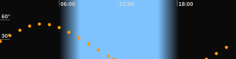 Höchster Stand (Kulmination)04:18 Uhr (h = 53.5°)