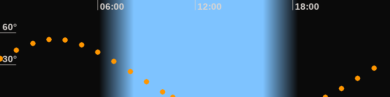 Höchster Stand (Kulmination)03:21 Uhr (h = 53.7°)