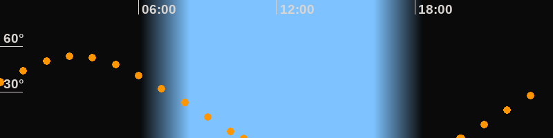 Höchster Stand (Kulmination)03:17 Uhr (h = 53.7°)