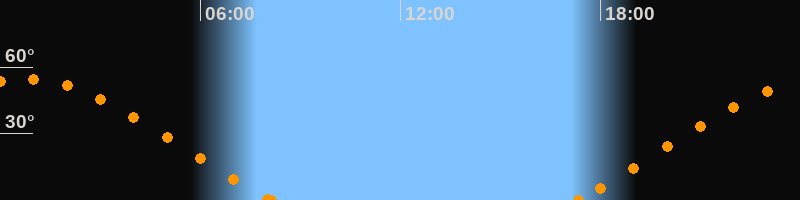 Höchster Stand (Kulmination)00:41 Uhr (h = 54.7°)