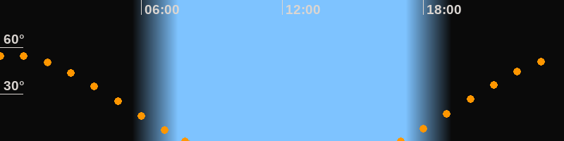 Höchster Stand (Kulmination)00:24 Uhr (h = 54.9°)