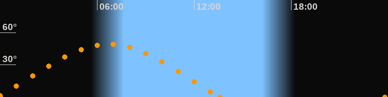 Höchster Stand (Kulmination)06:43 Uhr (h = 49.3°)