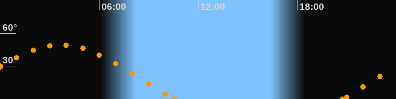 Höchster Stand (Kulmination)03:40 Uhr (h = 49.3°)