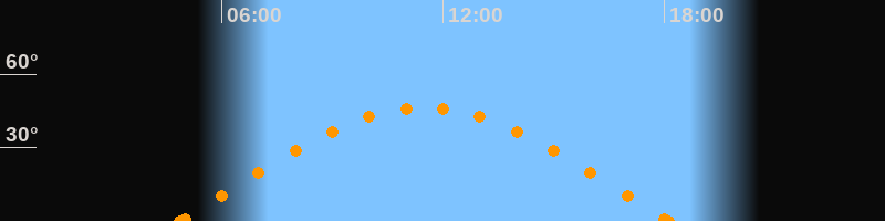 Höchster Stand (Kulmination)11:29 Uhr (h = 46.6°)