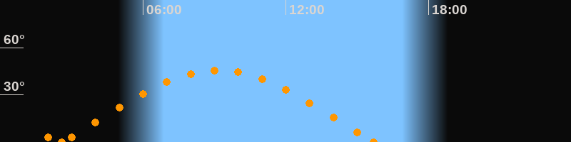 Höchster Stand (Kulmination)09:08 Uhr (h = 45.6°)