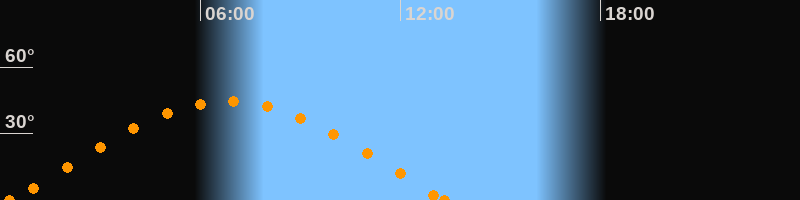 Höchster Stand (Kulmination)06:50 Uhr (h = 44.6°)