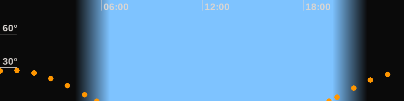 Höchster Stand (Kulmination)00:36 Uhr (h = 27.5°)