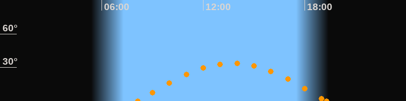 Höchster Stand (Kulmination)13:43 Uhr (h = 33.8°)