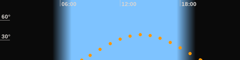 Höchster Stand (Kulmination)14:08 Uhr (h = 38.2°)