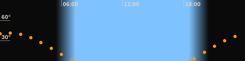 Aufgang18:34 Uhr im Osten (αAz = 85.7°)