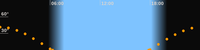 Höchster Stand (Kulmination)00:02 Uhr (h = 41.2°)