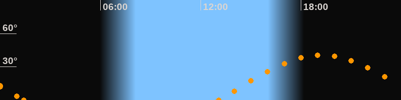 Höchster Stand (Kulmination)19:13 Uhr (h = 40.5°)