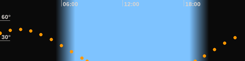 Höchster Stand (Kulmination)01:46 Uhr (h = 46.9°)