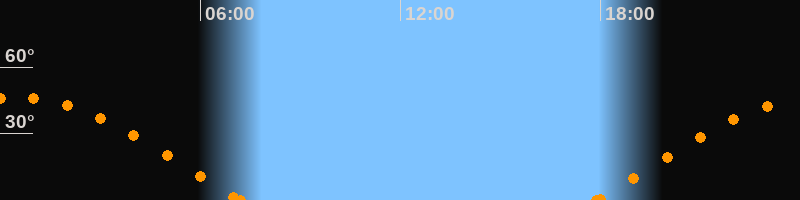 Höchster Stand (Kulmination)00:30 Uhr (h = 46.4°)
