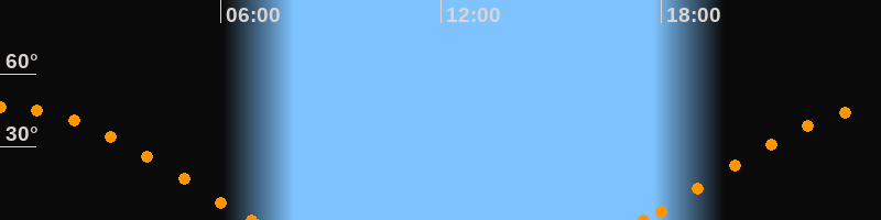 Höchster Stand (Kulmination)00:09 Uhr (h = 46.2°)