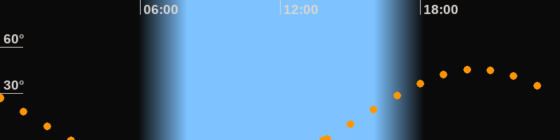 Höchster Stand (Kulmination)20:23 Uhr (h = 45.5°)