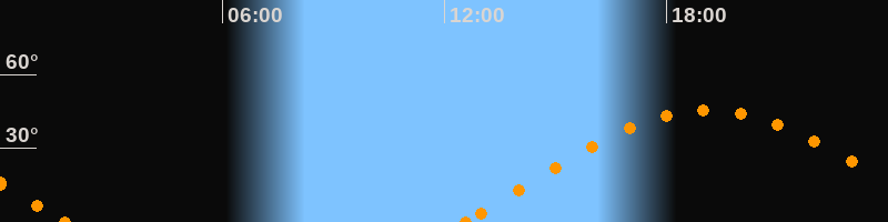 Höchster Stand (Kulmination)19:08 Uhr (h = 45.5°)