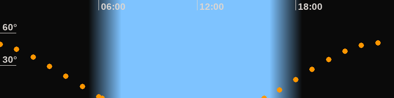 Höchster Stand (Kulmination)23:06 Uhr (h = 51°)