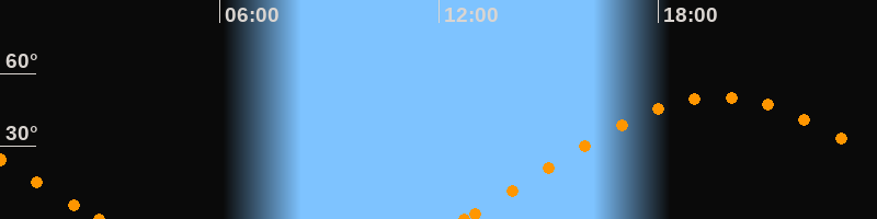 Aufgang12:42 Uhr im Osten (αAz = 71.6°)