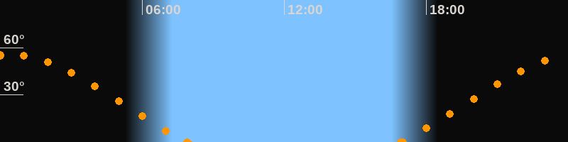 Höchster Stand (Kulmination)00:23 Uhr (h = 55.5°)