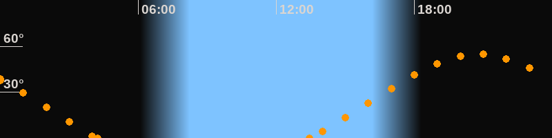 Aufgang13:26 Uhr im Nordosten (αAz = 64.3°)