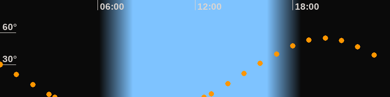 Höchster Stand (Kulmination)19:55 Uhr (h = 54.7°)
