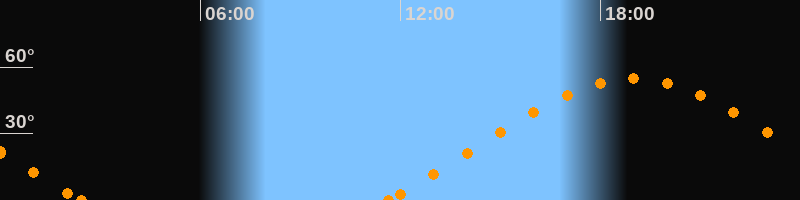 Höchster Stand (Kulmination)19:00 Uhr (h = 54.8°)