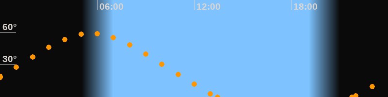 Höchster Stand (Kulmination)05:38 Uhr (h = 59.3°)