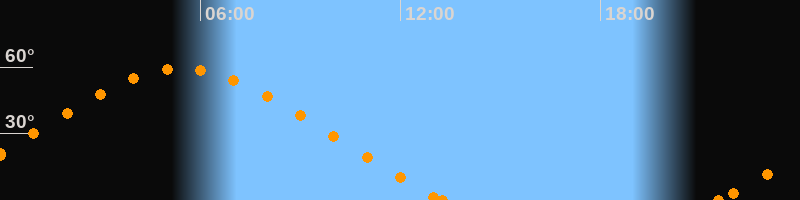 Höchster Stand (Kulmination)05:26 Uhr (h = 59.3°)