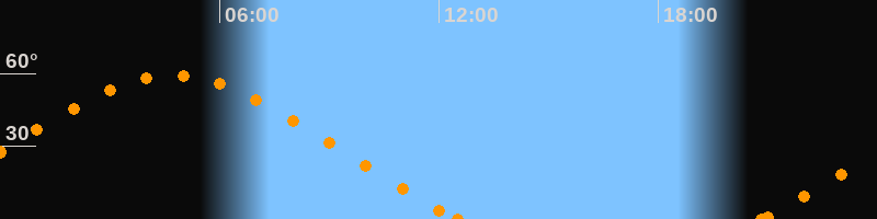 Höchster Stand (Kulmination)04:42 Uhr (h = 59.3°)