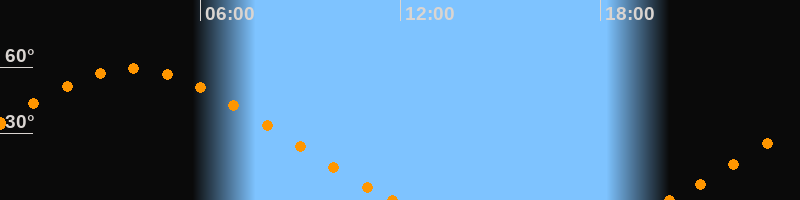 Höchster Stand (Kulmination)03:57 Uhr (h = 59.2°)