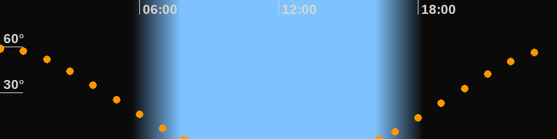 Höchster Stand (Kulmination)00:04 Uhr (h = 58.8°)