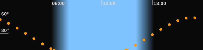 Höchster Stand (Kulmination)22:35 Uhr (h = 58.5°)