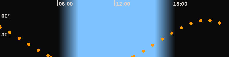 Höchster Stand (Kulmination)21:32 Uhr (h = 58.4°)