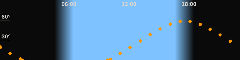 Höchster Stand (Kulmination)18:28 Uhr (h = 58.5°)