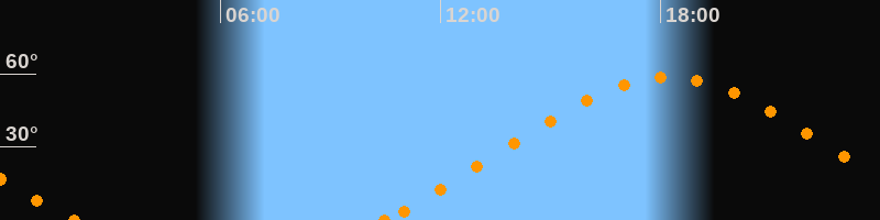 Höchster Stand (Kulmination)18:13 Uhr (h = 58.5°)