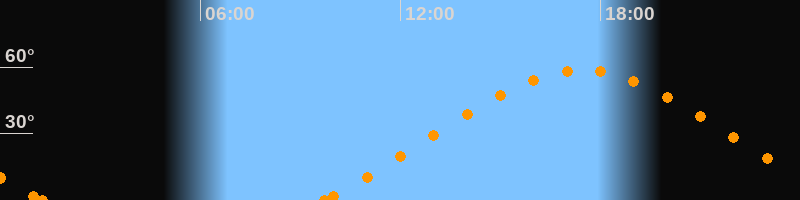 Höchster Stand (Kulmination)17:27 Uhr (h = 58.6°)