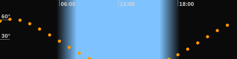 Höchster Stand (Kulmination)01:10 Uhr (h = 61°)
