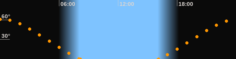 Höchster Stand (Kulmination)00:06 Uhr (h = 60.9°)