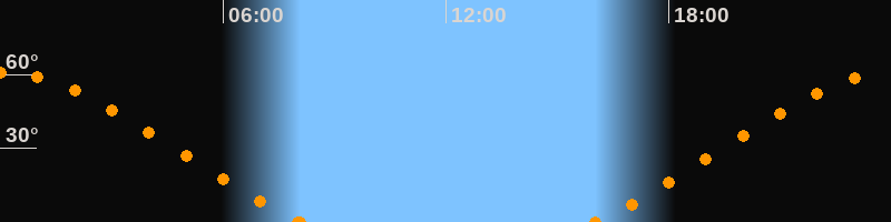 Höchster Stand (Kulmination)00:01 Uhr (h = 60.9°)
