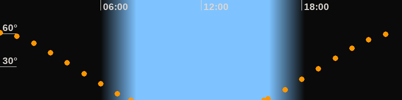 Höchster Stand (Kulmination)23:44 Uhr (h = 60.9°)